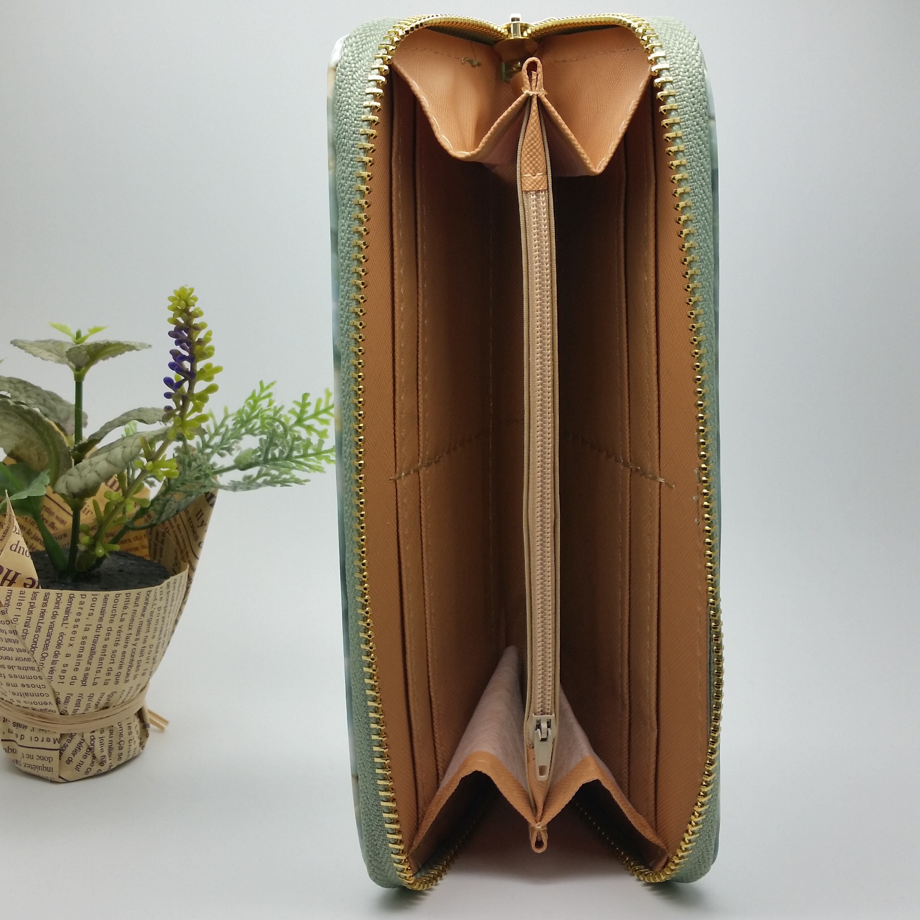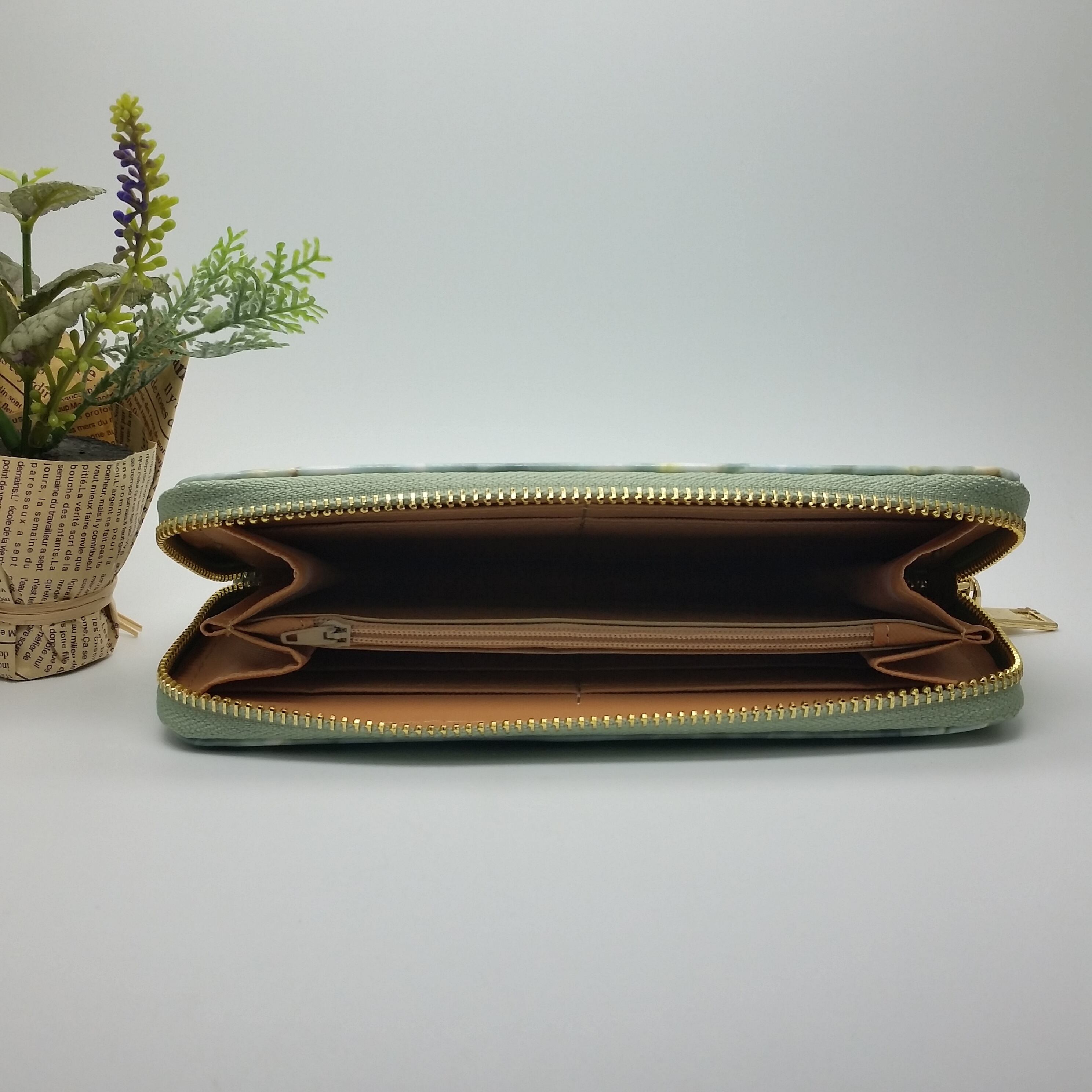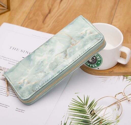 新品 送料込み 大理石風 PU レザー ラウンドファスナー 大容量 長財布