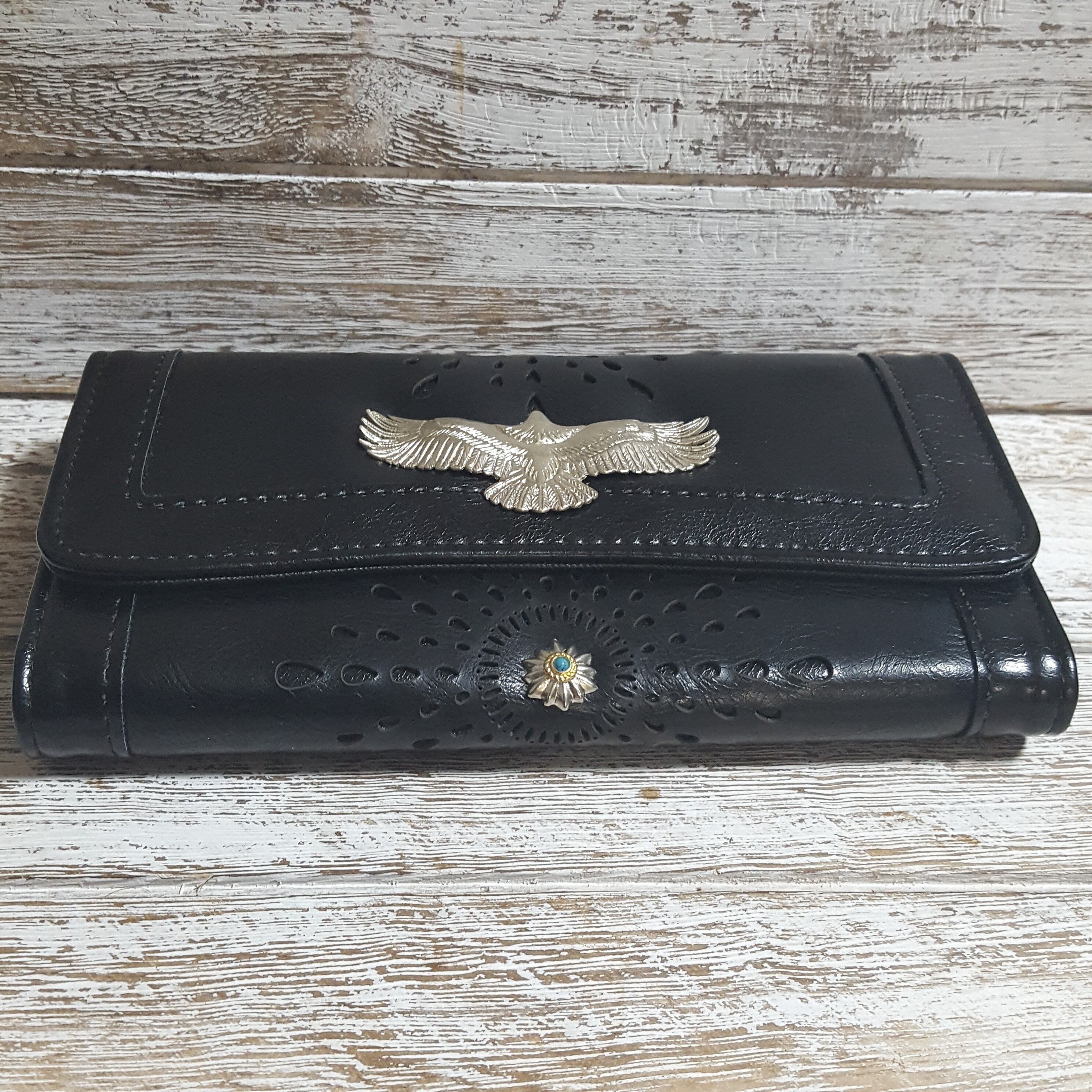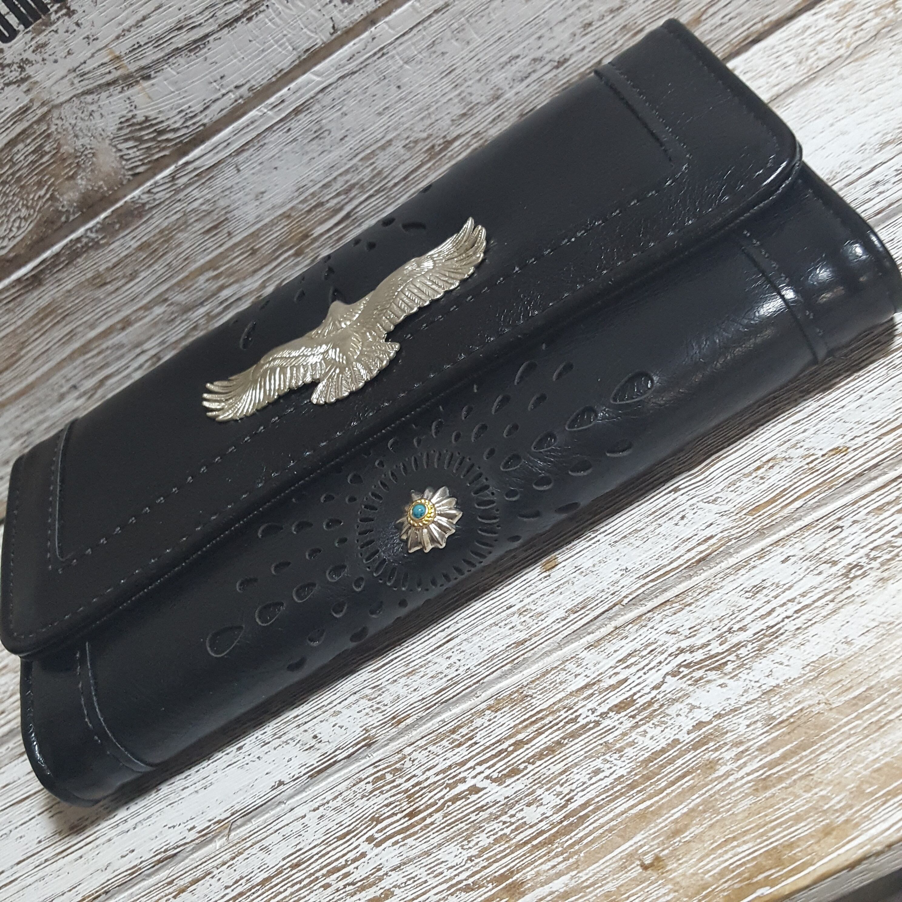 新品 送料込み ハンドメイドDIYシルバーイーグルクラフトレザー長財布 ブラック