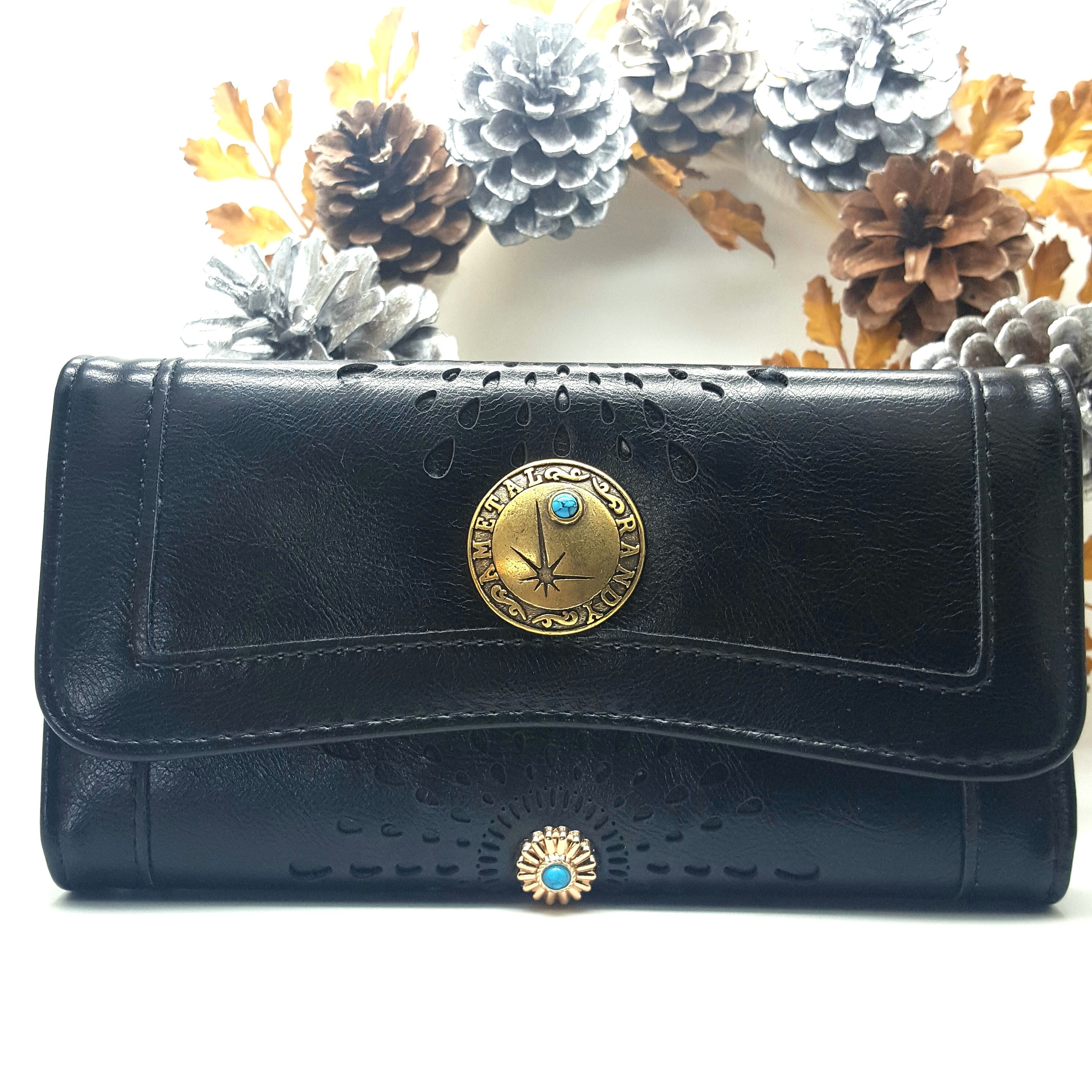 新品 送料込み ハンドメイドDIY ゴールドターコイズ クラフトレザー長財布 黒