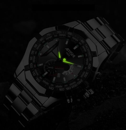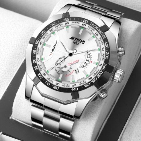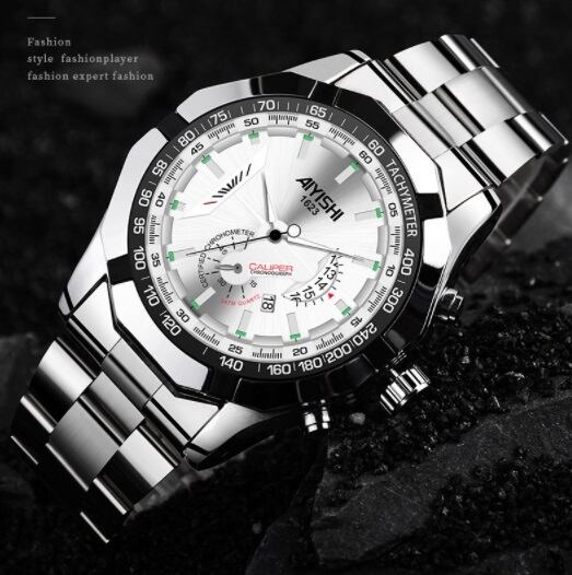 新品 デュアル クロノグラフ AIYISHI 腕時計メンズ ラグジュアリーステンレス白