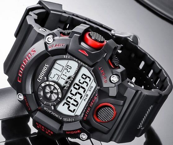 新品 送料無料 デジタル腕時計多機能 キッズ(ボーイズ)から大人まで 赤×黒