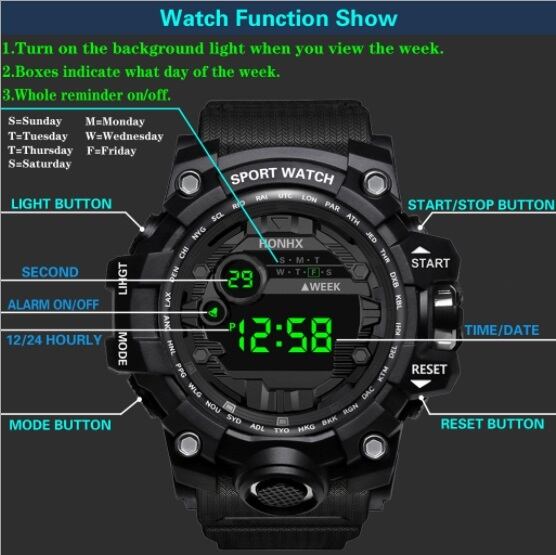 新品 送料無料 海外 HONHX 腕時計デジタル 多機能 LED ブラック