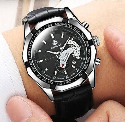 新品 デュアル クロノグラフ WEIGUAN 腕時計メンズ ラグジュアリーレザー 黒