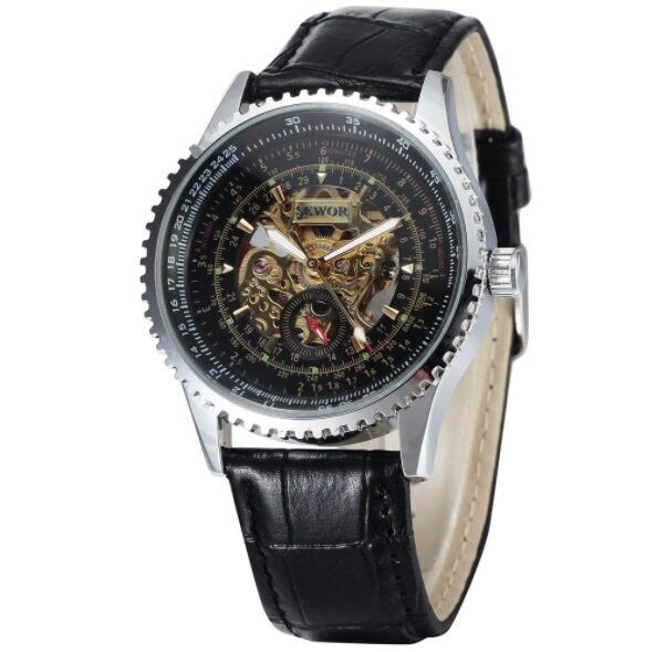新品 インナーベゼル自動巻き腕時計 本革【クロノグラフ稼働の本格仕様】