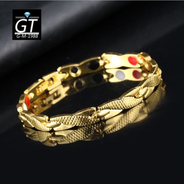 新品 ゲルマニウム 磁気 高品質ドラゴンパターン ブレスレット ゴールド