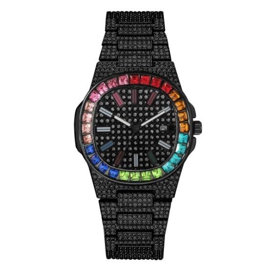 新品 ラグジュアリーウォッチ ジュエリー腕時計 CZレインボーダイア ブラック