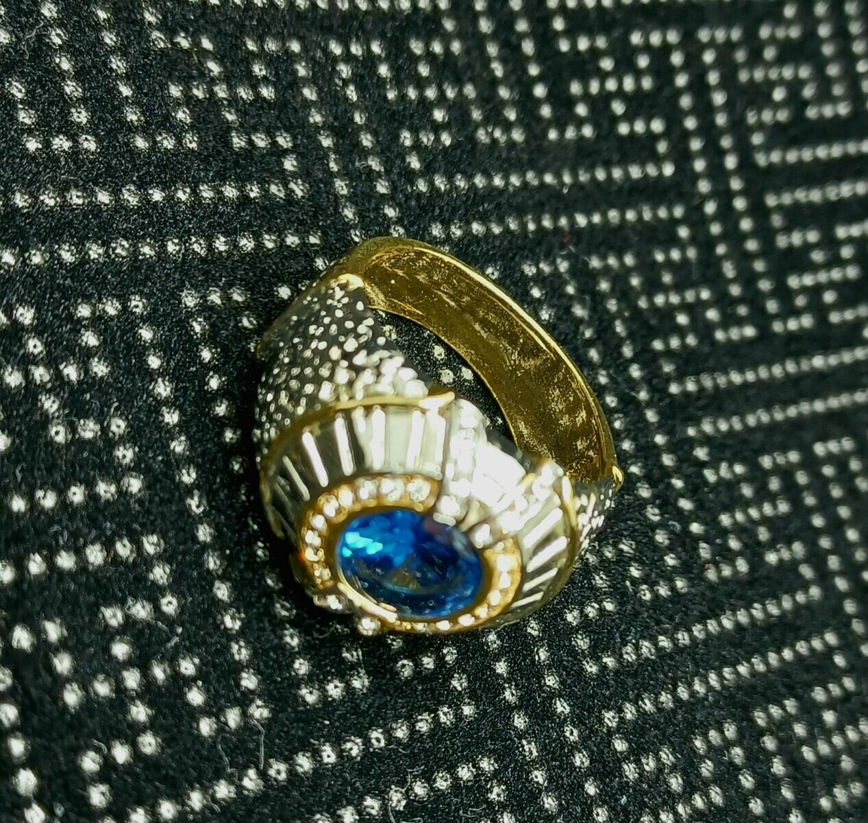 新品 ラグジュアリー メンズ アンティーク指輪 ブルーサファイアジルコニア