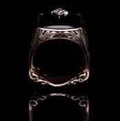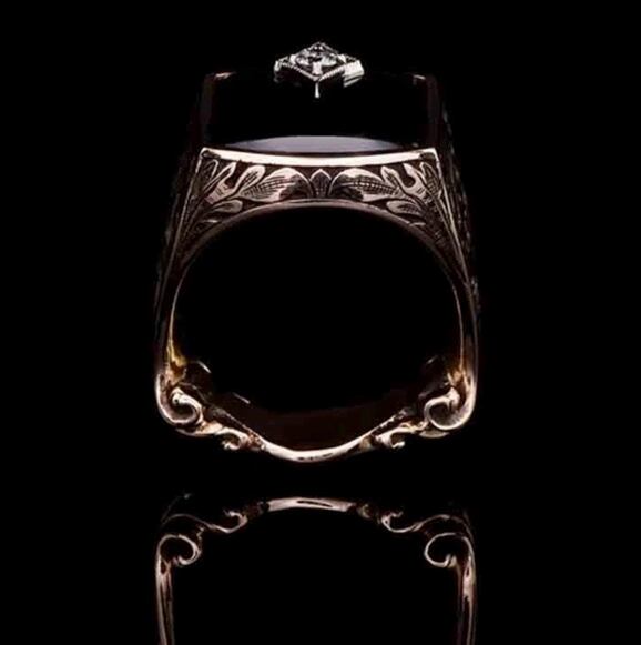 新品 ラグジュアリー リリー彫メンズ 指輪 シルバー ブラックオニキス風