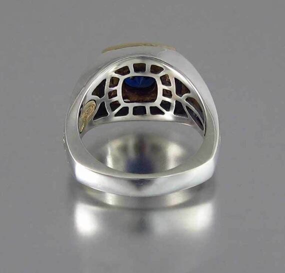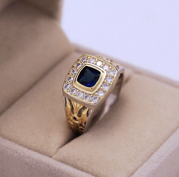 新品 アンティーク 彫メンズ 指輪 シルバー ゴールド ビンテージ サファイア