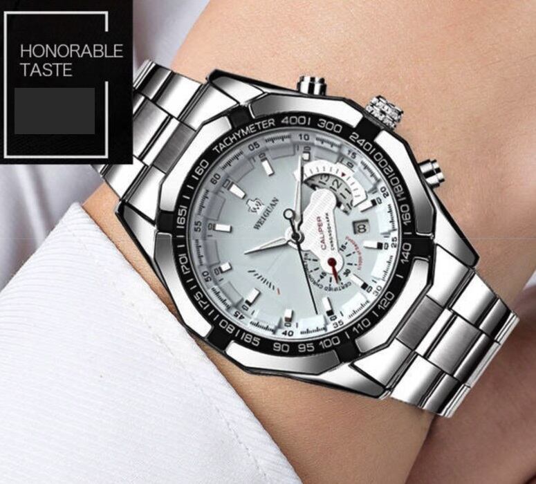 新品 クロノグラフ デユアル WEIGUAN 腕時計メンズ ラグジュアリーステンレス 白