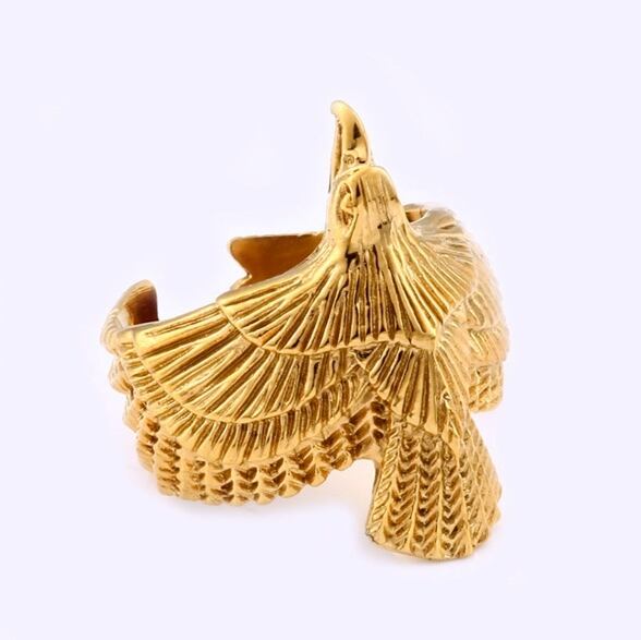 新品 イーグル 希少 チタン銅 ゴールド リング ラグジュアリー彫り メンズ