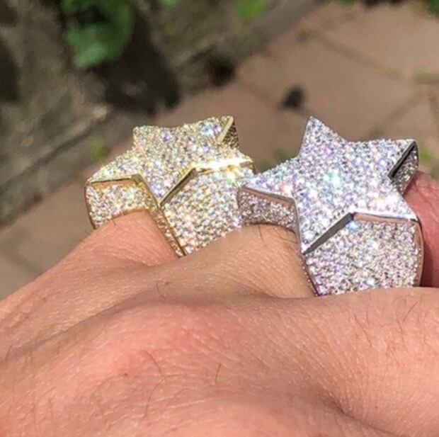 新品 シルバーラインストーンラグジュアリー メンズ スター 指輪 ラッパー