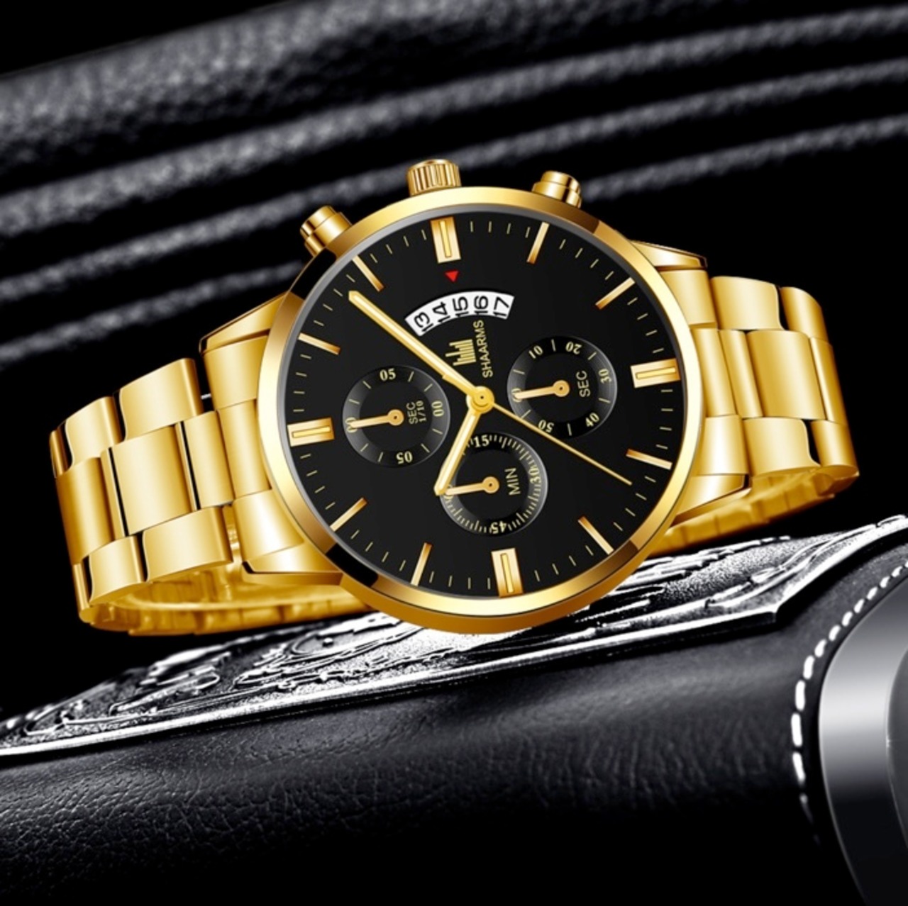 新品 デュアルタイプ ★SHAARMS★ 腕時計メンズ ラグジュアリーゴールド