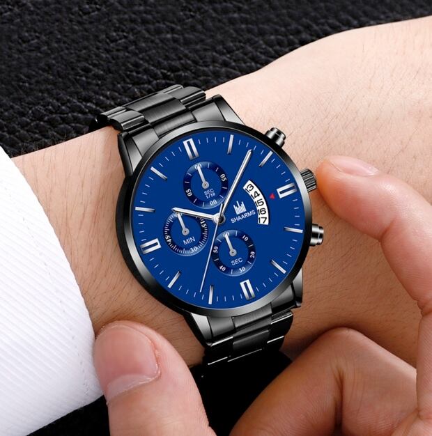新品 デュアルタイプ ★SHAARMS★ 腕時計メンズ ラグジュアリー 黒青