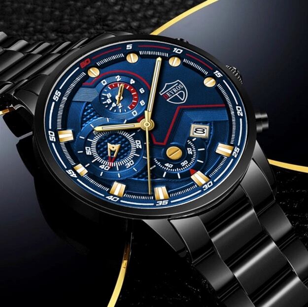 新品 クロノグラフ DEYROS 腕時計メンズ ラグジュアリーステンレス 黒青