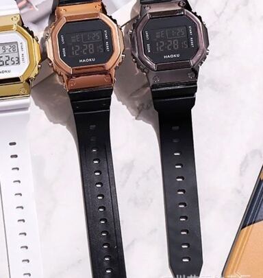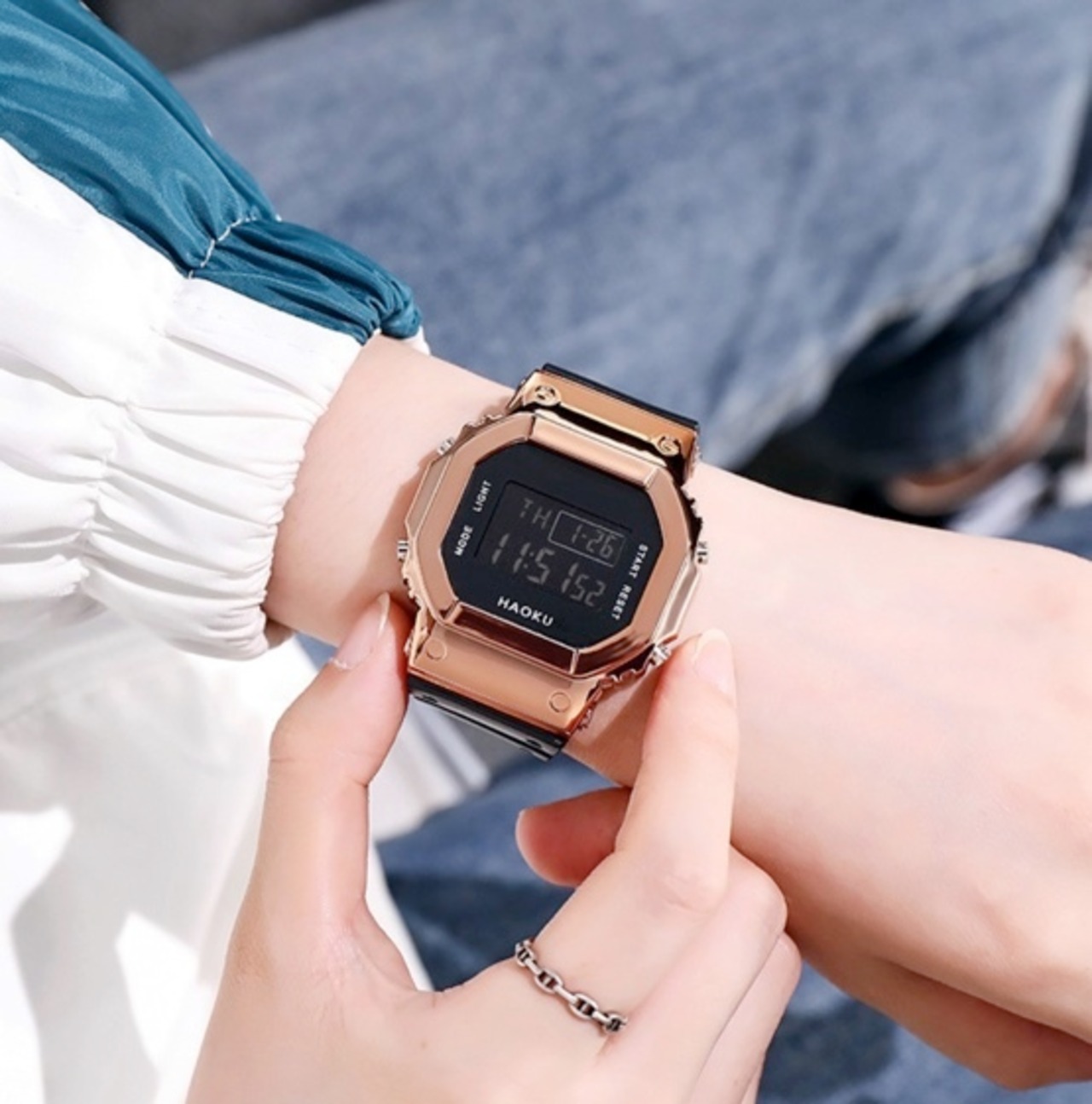 新品 HAOKU スクエア デジタル 腕時計 男女兼用 黒 ブラック×ゴールド