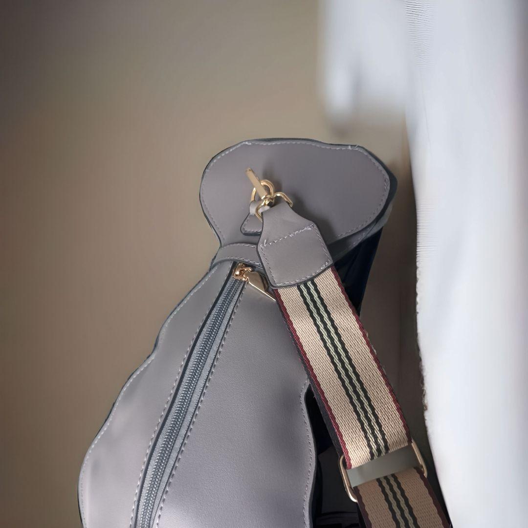 シルエットは愛らしくゴールド金具とショルダー紐のデザインがラグジュアリーな印象。