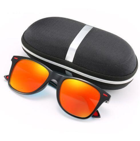 UV400 偏光レンズ ミラーサングラス 黒/赤
