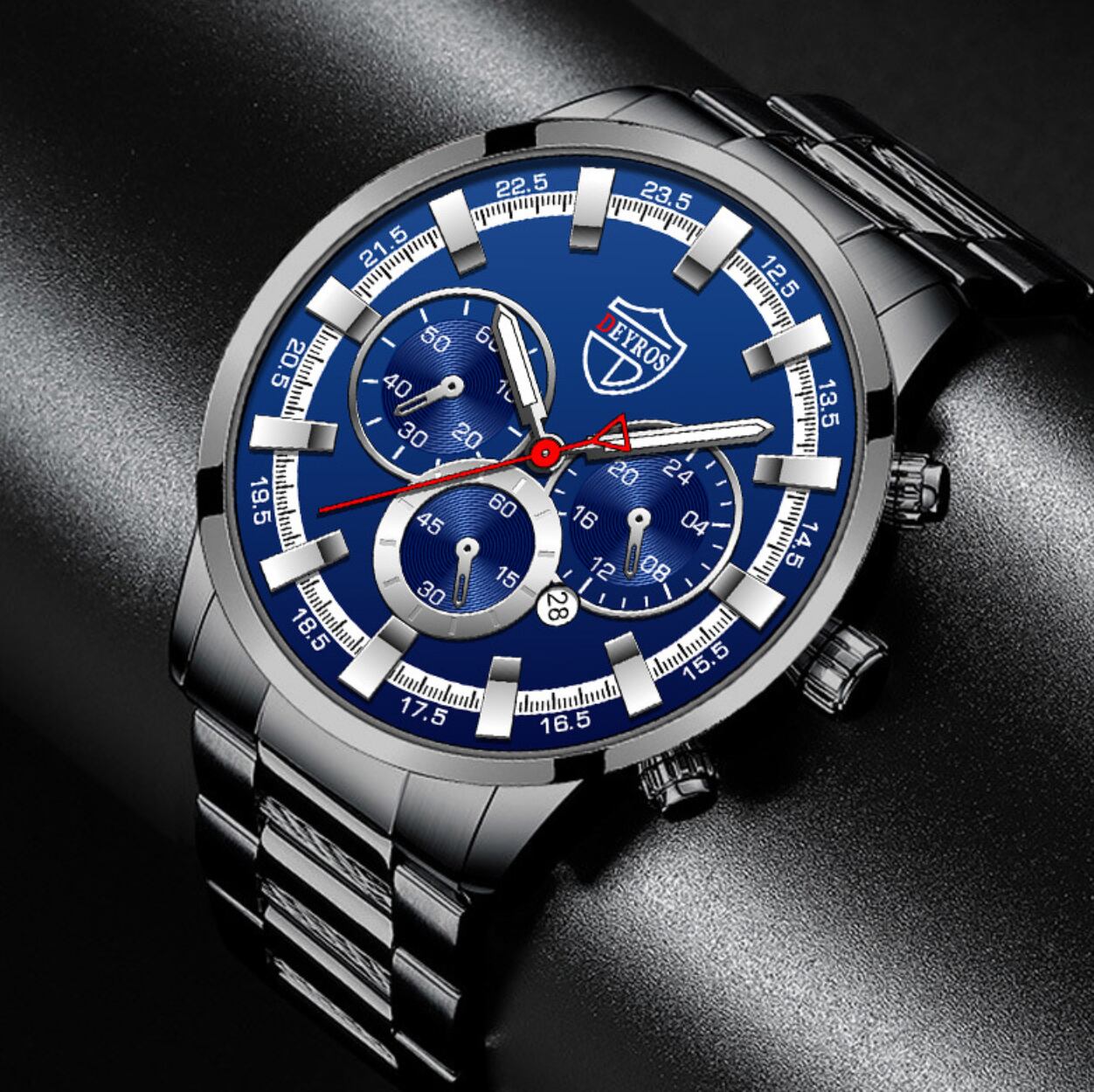 新品 DEYROS クロノグラフ ビジネス 腕時計メンズ ブラック/ブルー