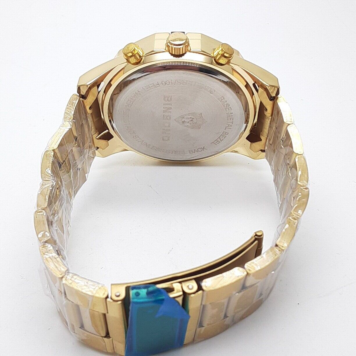 BINBOND ラグジュアリー スカル スケルトン ステンレス 腕時計 ゴールド