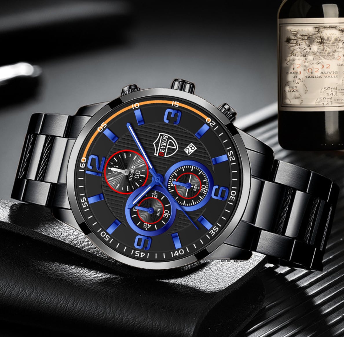 新品 DEYROS クロノグラフ ビジネス メンズ 腕時計 ブラック/ブルー