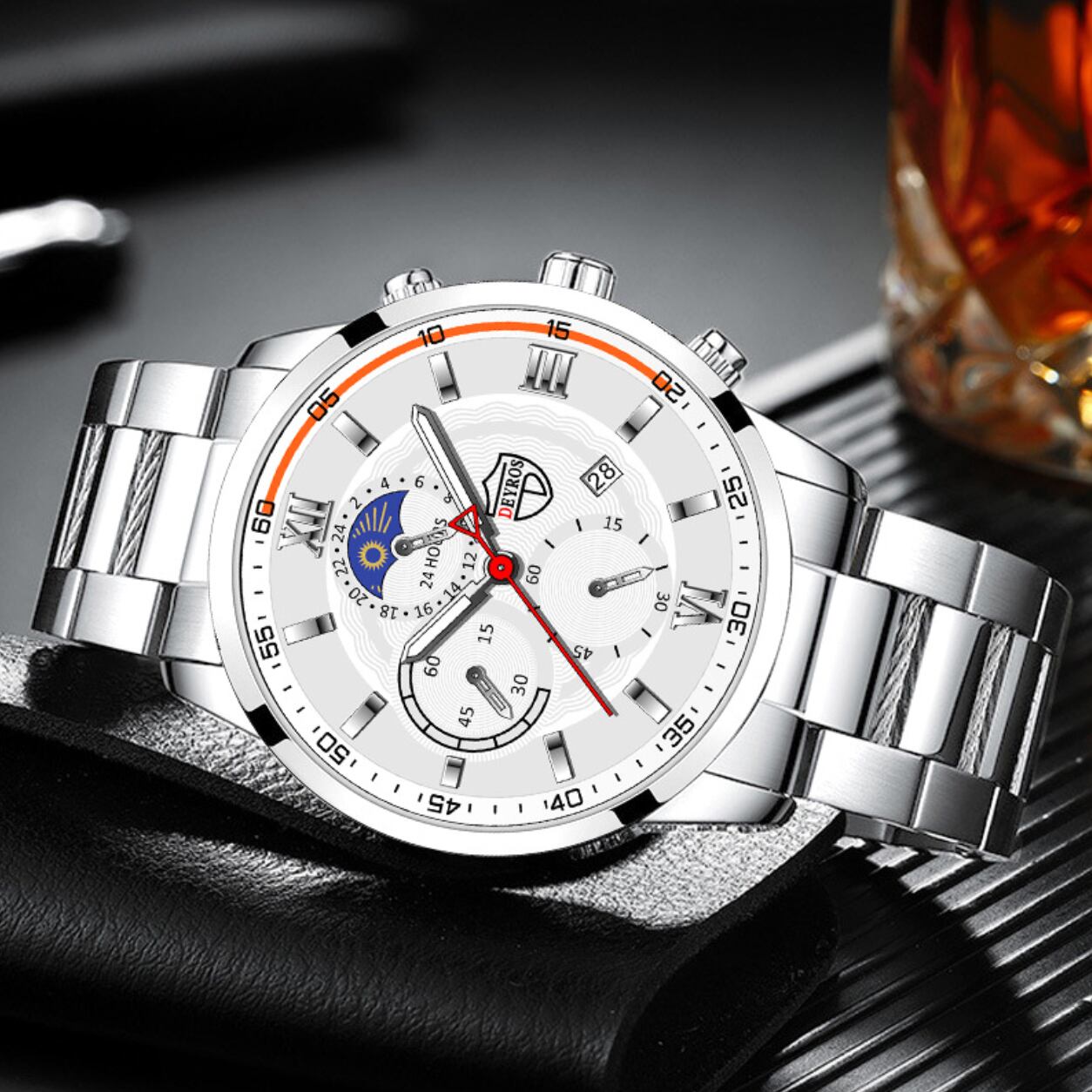 新品 DEYROS クロノグラフ ビジネス&フォーマル 腕時計 シルバー/白