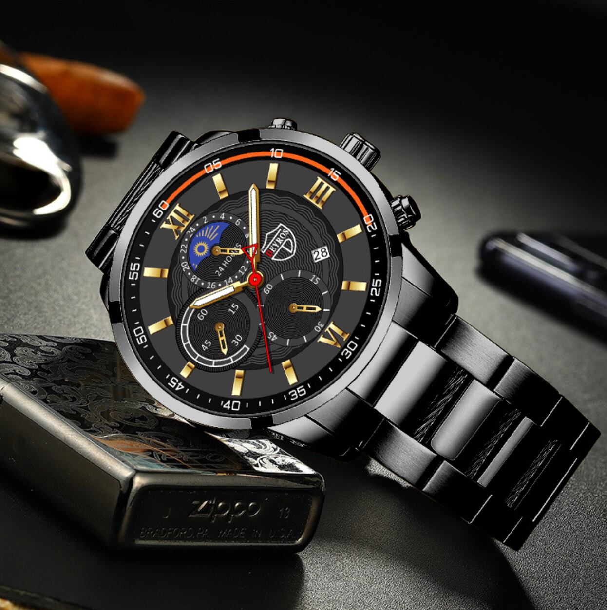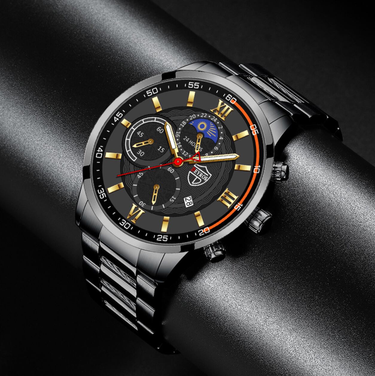 新品 DEYROS クロノグラフ ビジネス&フォーマル 腕時計 B黒/Gゴールド