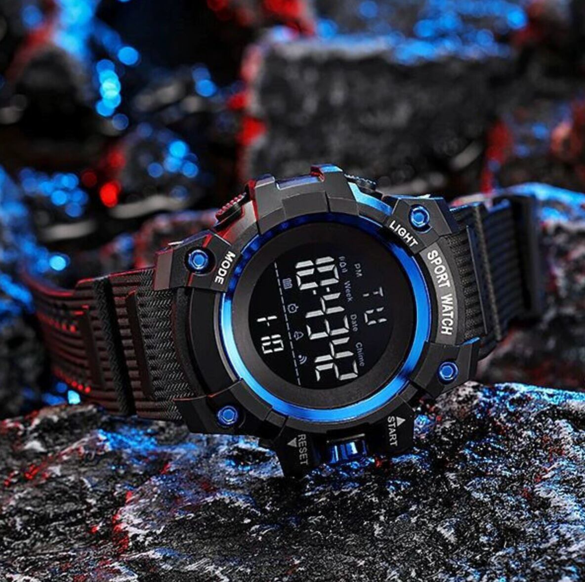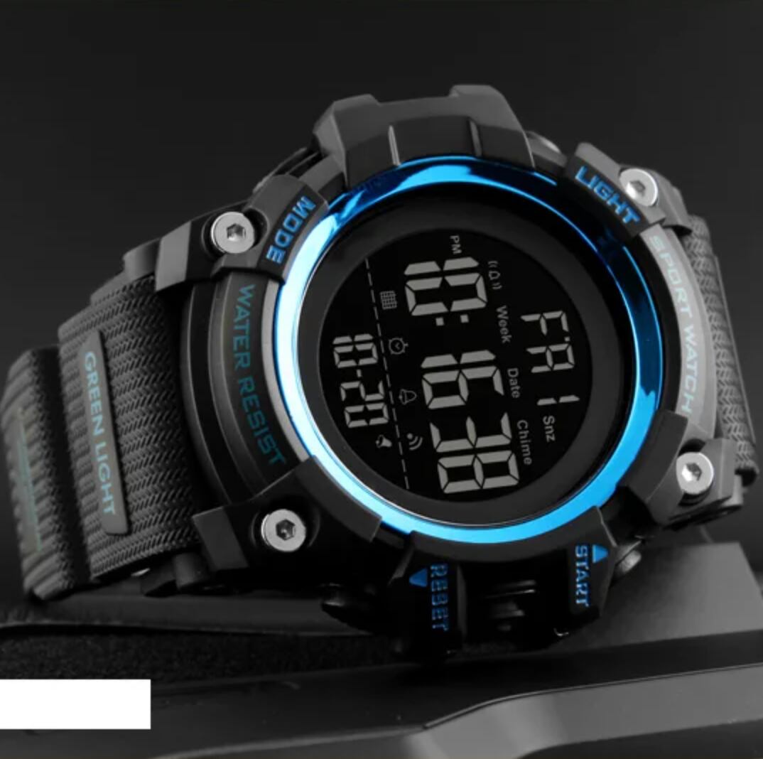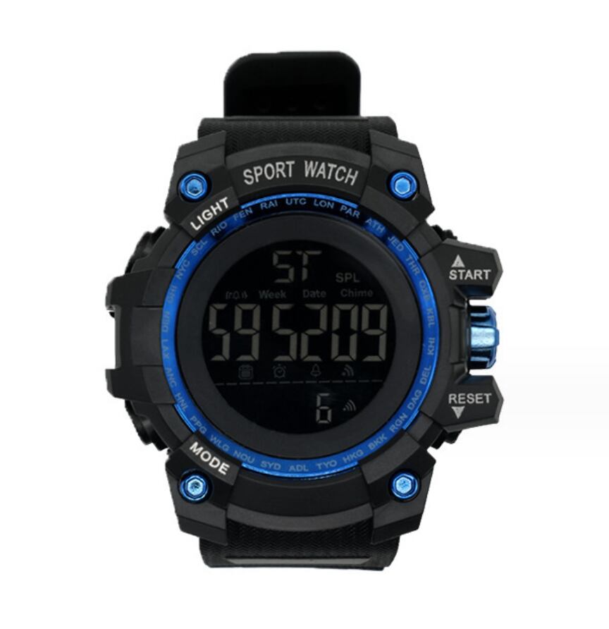 新品 腕時計デジタルウォッチ 多機能 LED 黒/青 男女兼用