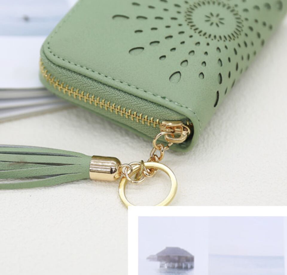 ペアセットブラウン&ミント PUレザーラウンドファスナー財布フリンジ付